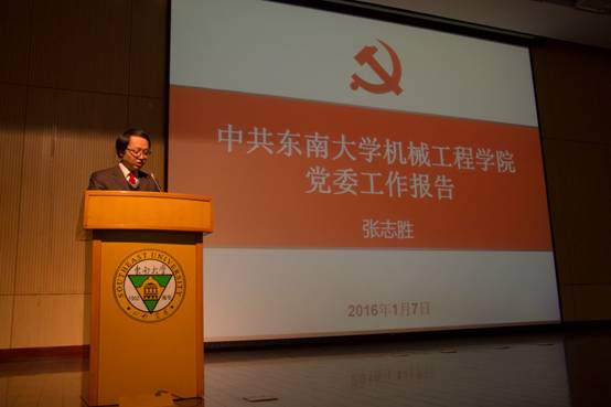 根据校党委统一部署,按照《中国共产党章程》要求,中共米兰体育线上平台新一届委员会选举大会在2016年1月7日于东南大学李文正图书馆润良报告厅中举行。大会共有三个议程,张志胜同志代表本届党委会作工作报告;王斌同志代表本届党委会作党费收缴和使用报告;选举中共米兰体育线上平台新一届委员会。