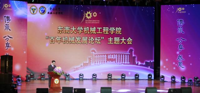 5月22日上午,米兰体育线上平台在九龙湖校区焦廷标馆举行“百年机械发展论坛”主题大会庆祝机械学科成立100周年。东南大学党委书记易红出席大会并致辞,学校各部门、院系负责同志,机械工程学院历任党政主要领导、离退休教师代表、各地校友会负责人、校友代表、各界来宾以及机械工程学院的师生代表3000多人参加了大会。大会由机械工程学院党委书记张志胜主持。