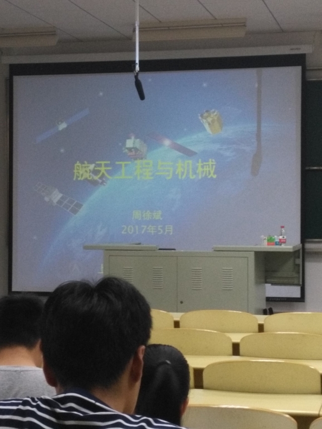 2017年5月31日,硕士生导师、上海卫星工程研究所副所长、航天八院结构领域首席专家、微振动问题研究专家、风云系列卫星结构技术负责人周徐斌莅临纪忠楼y214开展了主题为“航天工程与卫星结构机构技术”的讲座。