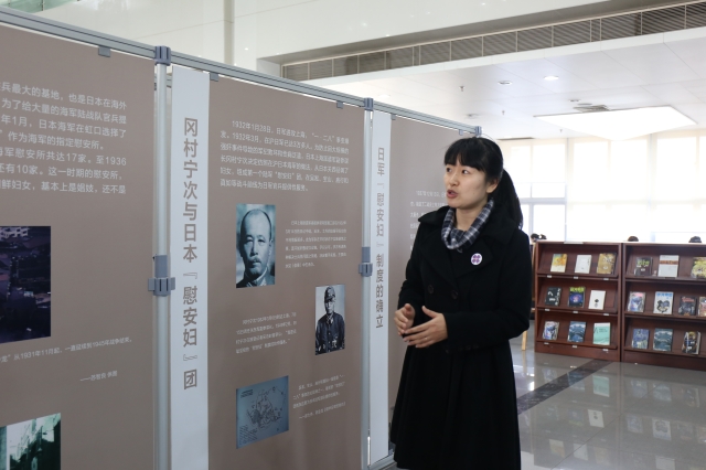 上午十点,开幕式正式开始,首先主持人介绍了抗日战争中有关“慰安妇”的历史及此次活动举办的目的和意义,随后馆长致辞宣布专题巡展正式开幕。本次专题巡展开幕式吸引了图书馆来来往往众多同学的注意力,大家都自发驻足加入,了解相关历史。
