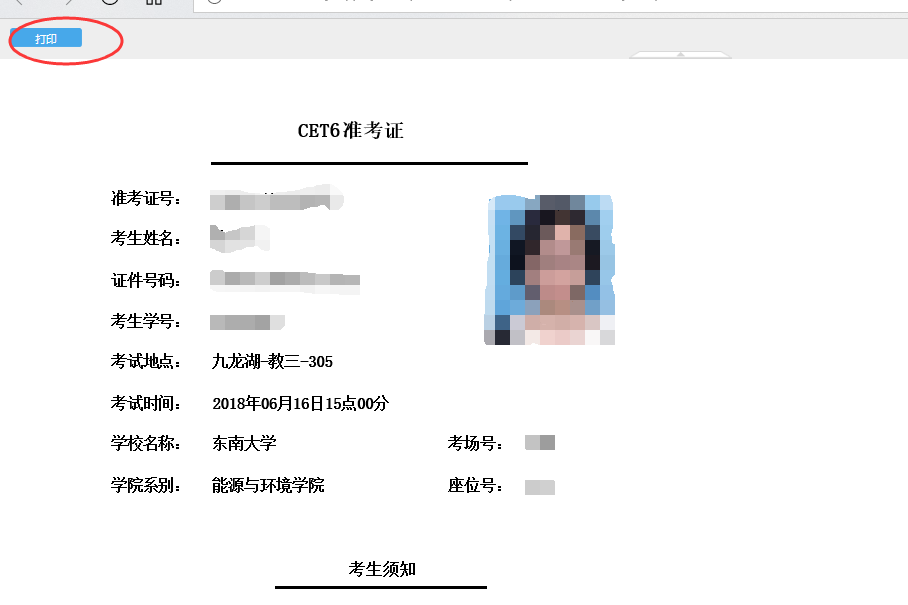 3、点击东南大学-四六级准考证打印APP,第一次进入时,在弹出页面点击‘进入服务’。进入信息核对页面(如图三)。