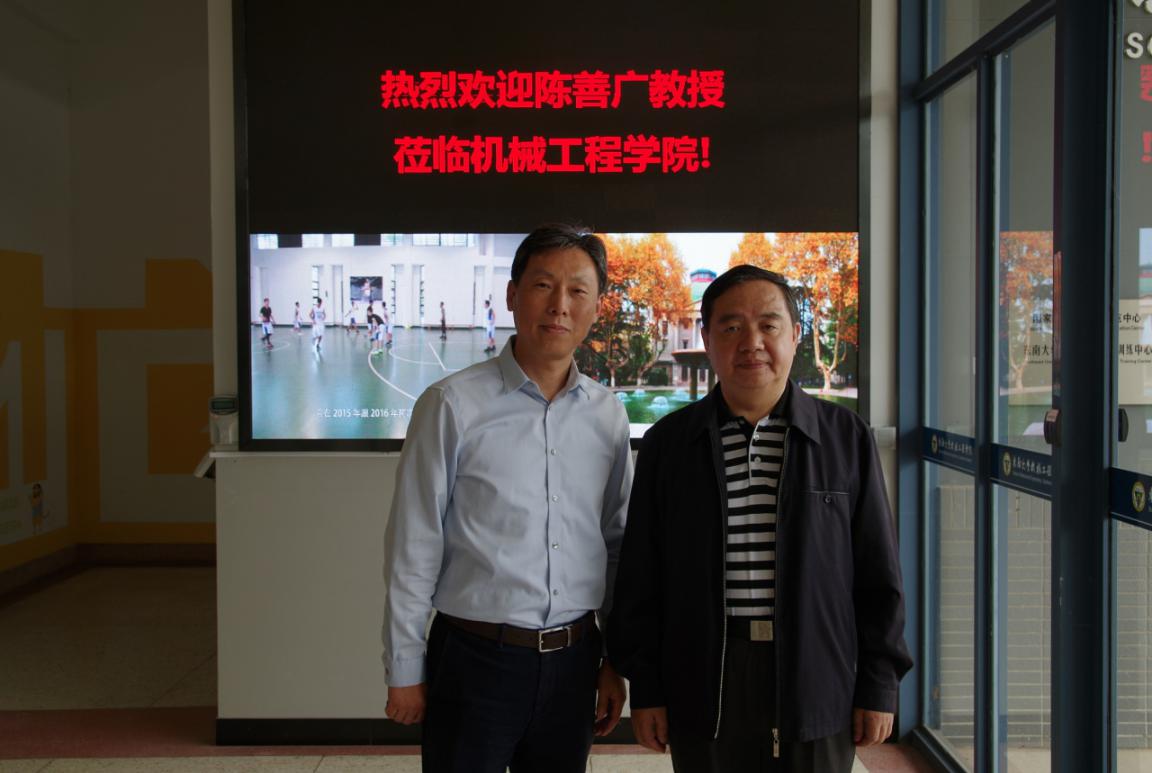 2019年9月26日,中国载人航天工程副总设计师、东南大学兼职教授、机械工程学院博士生导师陈善广教授应邀在东南大学九龙湖校区人文讲座报告厅做了题为“飞天英雄的足迹”的学术讲座。东南大学仪器科学与工程学院院长宋爱国教授、机械工程学院工业设计系系主任薛澄岐教授、机械工程学院团委书记史红叶以及学校近500名师生出席了这次“通识科学”系列名家高层演讲活动。