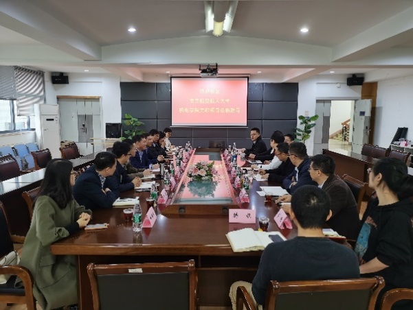 11月16日上午,南京航空航天大学机电学院党委书记袁智强、院长傅玉灿一行来到米兰体育线上平台调研。米兰体育线上平台党委书记张志胜、院长倪中华等院领导集体会见了南京航空航天大学机电学院一行,双方围绕加强导师队伍的建设和培训、健全“三全”育人工作机制、提高生源质量、完善专业学位研究生人才培养体系等诸多问题进行了热烈的交流,并针对健全研究生质量监控与分流管理机制、提升研究生课程教学质量、学位评价标准的制定以及新时代研究生教育培养目标等问题展开了深入的研讨。