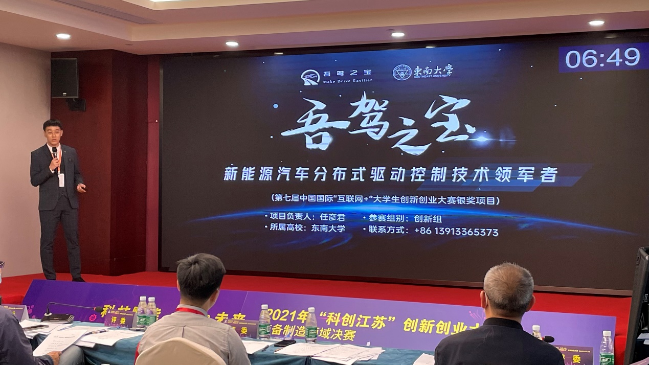 江苏省科协党组成员、副主席冯少东,团省委副书记张迎春,南京工程学院副校长朱晓春,省工信厅产业人才与合作处二级调研员秦飞出席了开幕式并共同启动大赛。在装备制造领域的决赛中,来自清华大学、同济大学、南京理工大学、东南大学、中国中车、国家电网、中电十四所等知名高校和大型国企的30个创新创业团队同台竞技。米兰体育线上平台博士研究生任彦君牵头完成的“吾驾之宝:新能源汽车分布式驱动控制技术领军者”项目,通过精彩项目路演和答辩,得到了专家评审组一致认可,成功斩获大赛一等奖。我院近年来持续推动创新创业和实践育人工作深入开展,不断完善创新人才培养有效模式、激励方式和长效机制,强化学生科学精神和创新实践能力培养,该奖项是我院在“双创”领域斩获的又一重量级荣誉。