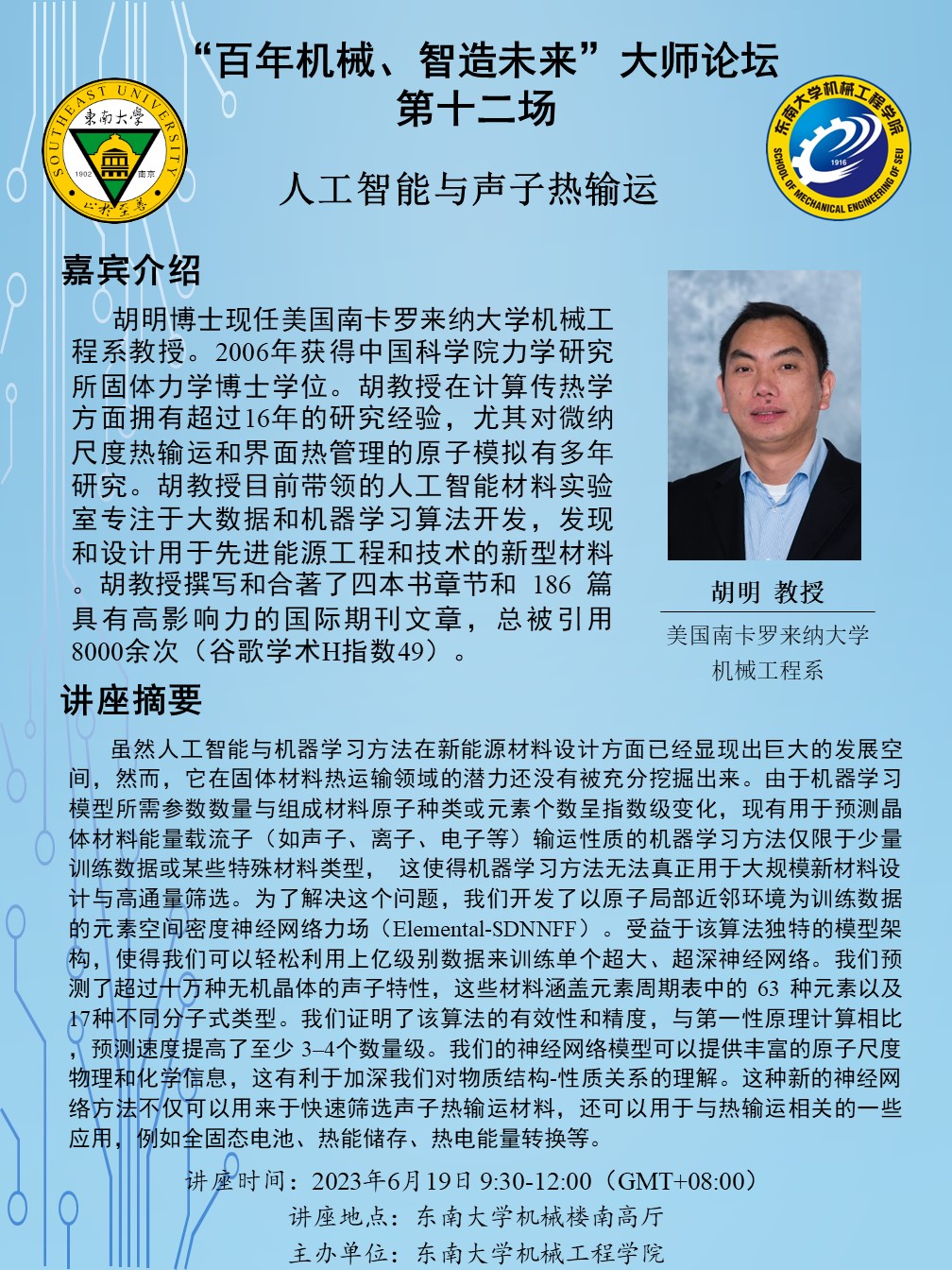 讲座地点:东南大学机械楼南高厅