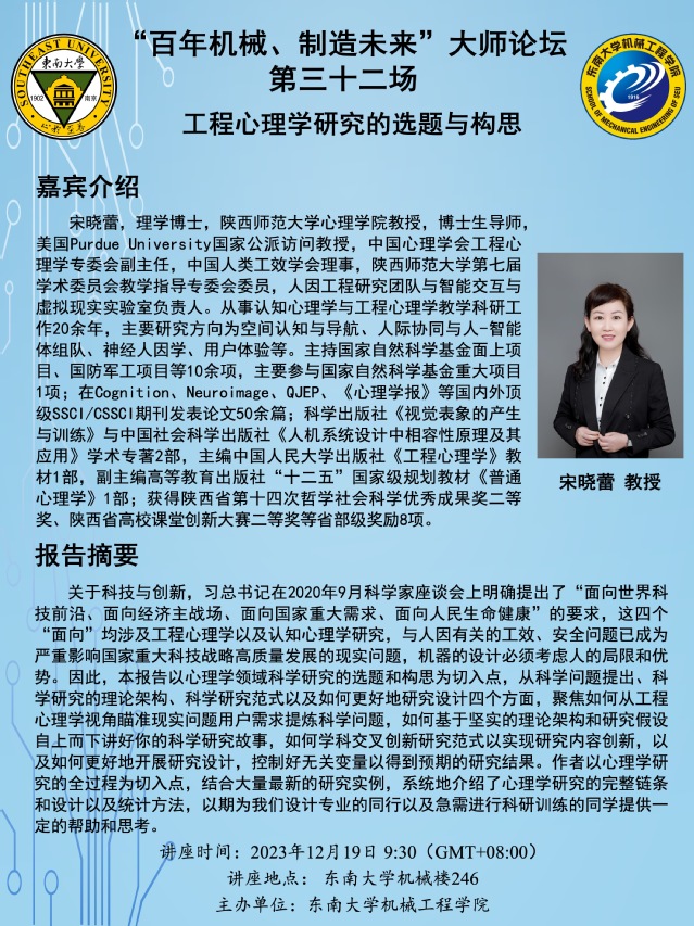 讲座地点: 东南大学机械楼246