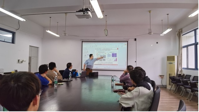 讲解环节结束后,与会师生积极与劳老师进行互动并提问。劳教授热情细致地与师生们交流了关于涡旋光束的旋向与手性结构旋向的关系、微结构制备的材料选择等问题,并就手性结构在微颗粒催化剂的约束和释放提出了新的应用展望。