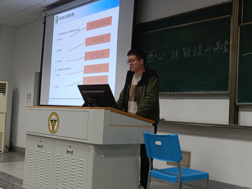 为帮助机械工程学院2018级本科生梳理毕业设计进程,保证学生能够高质量地完成毕业设计论文,129日晚, “匠·心”技能提升课堂——机械工程学院毕业设计指导于教六104顺利举行。本次活动由机械工程学院2018级博士生汪䶮主讲,出席活动的嘉宾有机械工程学院副教授庄伟超老师,院团委书记、2018级本科生辅导员史红叶老师。