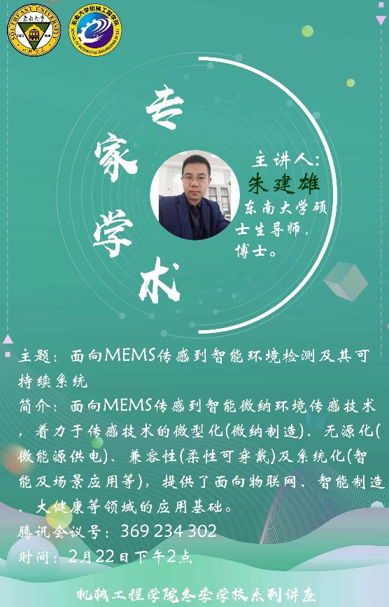 2月22日,米兰体育线上平台硕士生导师朱建雄老师为机械工程学院全体同学带来了一场别开生面的讲座,围绕面向MEMS传感到智能环境检测及其可持续系统这一主题,朱建雄老师从MEMS的发展历史与趋势出发,分析了其商业化面临的挑战,并着力于MEMS传感技术微型化、无源化、兼容性以及系统化这四个方面为我们详细介绍了MEMS传感的原理与应用。朱建雄老师列举从智慧城市到智能家居再到数字阮生、人体健康检测等领域的大量例子为同学们深动形象的展示了面向MEMS传感到智能环境检测及其可持续系统在面向物联网、智能制造以及大健康等领域的广泛应用。同时朱建雄老师也讲座过程中对于各种检测的机理深入浅出的为同学们做了介绍。最后朱建雄老师给同学们展示了自己在面向MEMS传感到智能环境检测及其可持续系统方面的一些研究成果,并与同学们做出了一些交流探讨,通过这场讲座,同学们对MEMS有了一定的了解,也明白了该项技术良好的前景。